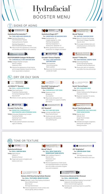 Includes: Platinum Hydrafacial; steam, cleanse, lymphatic drainage, vortex-fusion exfoliation, glycolic/salicylic blend resurfacing, vortex-fusion extractions, resurfacing high frequency, clarifying physician formula booster, clarifying hydrojelly mask, LED therapy, antioxidant vortex-fusion hydration, oxygenating finishing infusion.